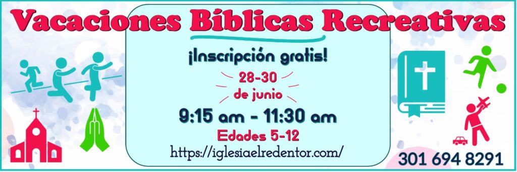 Todos los niños de edades 5-12 están invitados a participar en las Vacaciones Bíblicas Recreativas (VBR) en la Iglesia El Redentor.